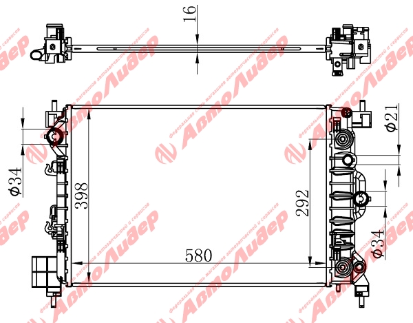 Радиатор охлаждения /AUTOLEADER для Chevrolet Aveo 2011- Opel Mokka 2012- /без крышки; CH-AVEO-1216; RB1010 LRc05196 CV00111 95316029 95316030